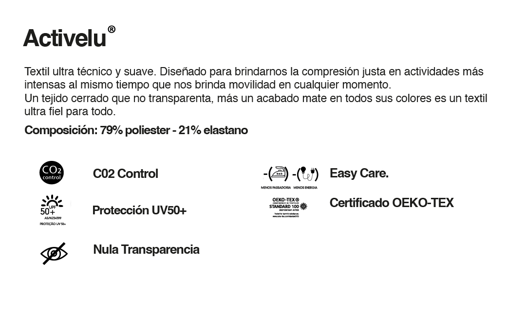 Confeccionado con Activelu, nuevo textil super técnico con nula transparencia.